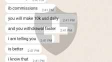 早上好,我的情况是,在一个电报群中,他们告诉我存入一些存款,作为奖励,我将被退回,并收取这样做的佣金,事实证明,在第三次存款时,他们告诉我,我应该存款多押金才能拿回我的钱,更多的福利,我照原样做了,然后他们要求我付更多的钱,我不想付更多的钱,直到现在他们有了我的钱,他们说要收回它我必须支付 480 欧元,但我没有这笔钱,事实上他们从工作和努力中拿走了 150 欧元。谢谢你,我希望你能帮助我