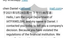 从2021年1月中申请出金,强制要求要缴纳利润所得的10%,凑了钱缴了後,因自身疏忽帐号有一码错误,被告知出金未成功需再额外缴纳5%利润所得给当地政府作为罚锾。又提高了房贷借钱缴纳!再次重新申请出金,又被告知需再缴纳5%或10%的利润所得作为【帐户认证金】认证我不是洗钱户,并再三保证帐户认证金以及申请的出金会一并返还。又借了信贷缴纳5%帐户认证金後,客服从此不见踪影!!客服Email不回,Whatsapp 客服联系的电话竟然是某一香港住户,还骂了我死小孩别玩电话。 这家IATFXWELSHI 公司前身是BTABCBRITON,我是在整个申请出金的过程中他们突然强势关站BTABCBRITON、宣称有诈骗公司冒用他们正牌有认证的公司,所以必须改组公司。现在想告也无从着手,因为每一次入金和缴交所得税,他们都说为方便服务台湾客户,所以提供台湾帐户,客户可减少汇损。实际上每次提供的都是不同的人头帐户,且帐户提供後必须在当天二小时内完成汇款,因为隔日汇就又变成不同的人头户了。