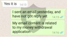 不能从账户中提取资金。他们要求他们的“财务部门”处理请求,然后通过币安和 USDT Thether 加密货币发送资金。当决定不再增加资金以达到 10 万美元的要求时,受到电子邮件和 WhatsApp 的威胁。他们使用“成功的”女企业家来说服您投资,向您展示她在 MT4 中的 70 万美元交易余额
