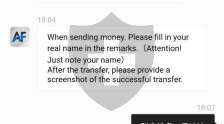 有人加我用尽了甜言蜜语,使我相信并存钱到AF index可以和他一起赚钱。在要求提款后,AF要求您支付23%的税款以完成提款,而在我故意减少利润之后。 AF仍然拒绝了该请求,并指责我刷单。杀猪盘!不要信!