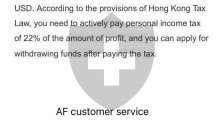 出金要交税,交完后问什么时候处理客服又说等待邮件通知,结果一直没有通知也没有处理。