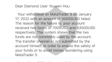 我最近通过经纪人交易了 mt5 股票。 MOTONGFX限定服务器已同意对新玩家使用促销,充值12000美元将获得1288美元奖金,根本没有交易。当我充值时,服务已经在mt5中将奖金转移给我。 19/2/2022 我想提款在我生日那天使用。似乎要等待很长时间才能从服务中提取资金。我没去币安,我再问服务部,他们说我取不了钱,钱有0usd,我的钱不见了,服务部没有回答????我只能回答我需要加更多的钱。想取消优惠的朋友提款需要多充值3000usd提款感觉被骗了,提款规则很多