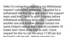 当心,他们是骗子,我在cryptodroid注册,他们选择LexaTrade作为经纪人,我注册后几乎每个小时都会接到他们的电话,我认为他们很好,但我存入了 254 美元,但这些钱没有显示在cryptodroid 应用程序上,我与他们联系,他们一直说我应该存入更多的钱来使用它或者我手动交易,所以我决定手动交易,在我损失 55 美元后,我决定退出,但现在三个星期,他们停止响应
