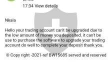 我已经加入Binary金额为R3000的bestcryptotradingfx期权投资,然后说我必须在R8000之前将我的帐户更新为经典帐户,然后我支付了该金额。然后,他们索取了R20,000的释放费。我没钱,但是我可以存R10,000,然后Raymond说他将协助剩余R10,000。然后我要求提款,然后他们又提出了另一笔索偿。故事,我必须购买价值60 000兰特的信号。请帮助我