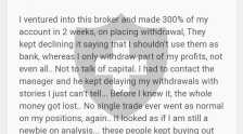 一位客户声称Binary.com盈利后无法出金,经纪人在他不知情的情况下用客户的钱进行了交易,所有钱都没了。客户声称该经纪人从用户的损失中获利。他要求监管机构关闭这家公司,否则他们将继续诈骗。