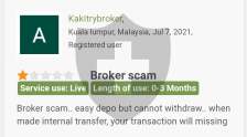 一场骗局,他们同意了我的提款,但没有入金到我的银行账户,小心这个平台,这是洗钱经纪人,这个平台老板用自己作为IB的名字来愚弄人,他从追加保证金的人那里拿钱,当你赚的很多的时候他们不给你钱,当你利润很少时会付钱,当心这个垃圾平台,不仅是我很多人抱怨他们,他们会在你赚了很多利润后封禁你,他们会给封禁找理由,小心点,他们经常无缘无故地删我的评论