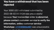 你好,我收到了一个中国女孩的消息;她开始对我很好。大约一个月后,她开始推动我将资源放入网站 Yabo.mt-crm.com。她说她爸爸在这个协会里,她可以分享内部数据,让我超过 100% 的到来。起初,我向她表示不,并告诉她这是在地球上许多地区的内部交易和非法行为。她在中国表示不,这是完全合法的,并再次敦促我贡献一分。 2000 美元。毫无疑问,在 7 天内,这 2000 美元在他们的服务器中变成了 4000 美元。 3 天后,她再次开始推动我做出更多贡献,她向我保证,我将获得 200% 的回报。我说不,问让我拿出一些现金,她说不应该多捐,因为她叔叔过几天就要辞职,我又捐了大约 2500 美元,然后他们又给了我 150% 的回报。这笔钱和我的工资将变成 9000 美元左右(因为他们在我之前的 4000 美元上给了我一些)。这次我试图从记录中提取一些现金,在这里他们开始制造不便,并要求我为我的 KYC 支付 2000 美元。我又给了 2000 美元,现在我的雅博账户里只有 11000 美元。事实上,即使在这次 KYC 之后,他们也不允许我收回我的现金并要求支付 3000 美元的税款。这些先生是骗子,并使用女士作为他们的交易专家。我想通过网络犯罪单元向他们发出反对意见,因此他们的网站和服务器不应该在印度这里工作,任何人都不应该像我一样处于困境。