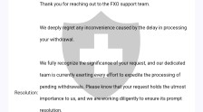 我使用过去 6 个月的 FX Opulence 并交易合成指数。 这是唯一为交易提供综合指数的经纪商。 我之前存过钱,也提款过,但是。 我的最后一个请求已等待 8 天,之前我提出了提款请求,然后又被稀释了。 他们不处理提款,他们的支持人员说我们面临一些技术问题,所以这就是我们升级系统的原因。 所以请做点什么,我的帐户有 18000 美元,全部都是客户资金。 所以请提供一些解决方案,知道该怎么做,并且系统现在也没有响应.