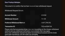 我已经投资了1192140印度卢比,即[13246 USDT],我已经多次发送提款请求,但是这个经纪人无法接受提款请求。这个经纪人给我发邮件说由于网络攻击,无法提取USDT。这个fxopulence经纪人没有给我钱。