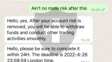 小心这位自称位于英国并使用伦敦时间、区号为 +1 的香港经纪人。因为我无法取款,这个经纪人让我重新存款,我以1016美元的价格完成了......我成功后,他们说他们必须再做一次,因为这是错误的方式。