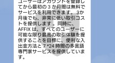 我进入了FX集团线并被邀请在该集团内开设AFFIX账户,但当时由客户服务经理Yuichi Koizumi负责并开设了账户。 Yuichi Koizumi 还负责开通线路和处理存款和取款。当我告诉他们我要存款时,那是一个我不知道的个人外汇账户。心里着急,先只转了50000日元,反映到交易账户里了,于是第二天又入了50000日元。既然入金了,就跟小泉先生说想出金一次,习惯出金,申请从交易账户中出金10万日元。第二天提款就记入了我的账户。于是我这才松了口气,存了80万日元。我做了一笔交易,一笔交易损失了$2,928,所以我申请提现剩余的$4,133.03。我是1月28号申请的,还没退。我在我的 AFFIX 交易账户中看到一条消息,但我的提款申请仍在审核中。即使我联系了在线客服经理小泉雄一,也没有读到,也没有联系方式。我要你尽快取钱。