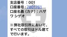 如果您存入710万日元并在老师的指导下进行交易,您的利润将立即增加。开户后大约两周,我申请提款7万美元,但第二天就被告知无法提款,因为开户还不到一个月,所以提款被拒绝。我设法协商并在第二天提取了 3,500 美元。之后,我被告知要过10个工作日才可以提款,或者说距离我开户还不到一个月。一个多月后,当我告诉负责人(德岛正治)我想提取4万美元时,他们要求我通过兑换应用程序完成手续,我照做了。然而,转账并没有发生,经过多次询问,我被告知,除非我缴纳利润税,否则无法提取资金。首先,从未向我解释过提款有什么条件,甚至当我询问时也没有明确的答复。我被要求为我的 40,000 美元提款缴纳超过 88,000 美元的税款。我想要求他们从那里缴纳税款,因为他们的账户上还剩下 360,000 美元,但他们坚持不能这样做。我不明白支付 88,000 美元才能提取 40,000 美元。首先,我不明白3月份纳税,而且我不相信如果我支付88,000美元就可以全额提取。我希望返还剩余的本金 660 万日元。我孩子的学费都被浪费了。