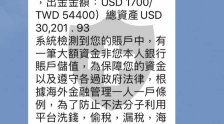 日前入金20000台币 直到赚到够的金额要提领却发出这种讯息,还好我有即时挡住不继续,不然当牛郎一辈子也还不清