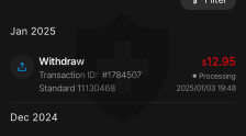 我目前交易于 IUX。然而我存了币,提现的时候却没有币了,只好去银行提现,但是24小时过去了,还是没有看到钱转账。在消息通知面板中,我看到它正在审核中,但仍然收到等待请求。我感到很困惑,不知道从2024年12月9日晚上9点提现时间到今天2024年12月11日,我仍然看到状态正在审核中。期待获得支持