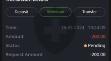 从3月15日星期五开始就催促提款200$,到现在还没收到钱。第一次存款时,经纪商会告诉您使用BitKub账户进行转账。但提款时,经纪商要求使用Metamask账户收款,看起来很奇怪,也不靠谱。因为现在有很多人无法取款。