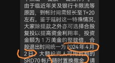 1、2月份利润提现到现在没到帐,一开始说3月25日前完成,现在又说要办银行卡,又要到4月25号前, 2、4月份开始又停止了MT5上帐号交易,又说要改买理财资产包,规则经常改来改去