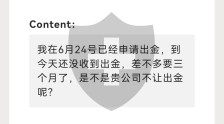 2020年7月分出金到现在,差不多1年了,出金还没有到账,客服的回复都统一模板回答,
