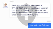 我得到了外汇交易建议 总投资 475,000 泰铢 通过 binance 购买了大约 12179 美元的硬币 通过 MT5 交易利润 37742 美元 总共需要 49921 美元 足以通过 dask99 提款 说费用必须在付款后支付 1733.4 美元 没了仍然没有提现,通知您必须缴纳 7548.46 usdt 的税款才能提现所有款项。我付不起。经纪人说系统将于2022年6月15日关闭,不能再提款了。现在我想我一定是被骗了。所以提出投诉来帮助我。收到退款