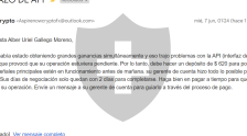 与公司进行交易 ASPIRENOW CRYPTO FX还剩两天的时候,他们给我发了一封电子邮件,说我必须为 api 损坏支付 620 美元的押金,才能提取我的收入。今天我的账户里有 3,135 美元,在我存入 620 美元之前我无法提取它们,为了生成我的提款,他们也不发送提款的安全代码,为此我发送了一封电子邮件,我通过聊天联系了他们平台,他们没有给出答案,我必须记录下来。有人能帮助我吗
