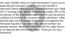 据我报道,我通过whatsapp应用程序通过客户服务进行交易,当我要求提款时,它告诉我支付20%的税,缴纳20%后,几天后,我问为什么我不能提款,税务部门怀疑我洗钱,黑钱应冻结税款,捷克证券交易委员会要求我支付提款金额的18%,以确保成功3天后将提款退还。在我又支付了18%的款项后,我的提款帐户遇到了高额付款问题。我联系我的银行没有举报,cskh发了一封电子邮件,要求支付9%的款项以确保24H后提款+ 1%的款项,因为我的帐户有问题,所以要扣除存款费用,在全额支付之后再打电话,因为政府资金约有3-5天的约会。等了一天多之后,我发短信并没有回应