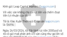 我的名字叫 Nguyen Anh Tuan - 身份证号 741193,于 2023 年 7 月 3 日在“Leap Capital Markets”创建了一个帐户 - 在向该帐户存入 6000 美元之前,我联系了一位名叫 Khai Dang 的朋友,号码电话/zalo:09447678471。来自Khai Dang的信息: - 账户有3000$可以在3天内进行交易,3天后,投资者将享受所有利润,条件是他必须存钱并进行交易。 3天内,资金返还30-50% + 交易7-15天后,资金100%返还账户 - 2023年7月6日,场内将提取3000$和5057$的经验奖金我的可交易资金。 3天后——因为我在等待5,057美元到账,所以我没有存入更多资金。到目前为止,我已经多次发短信和打电话给 Khai Dang,但都没有收到回复,所以我拨通了这个号码。交易所热线和楼层告知我们这是业务方的错误+我告诉楼层业务人员没有看错,因为他在zalo上发了短信(附图片)但楼层拒绝处理。 + 目前我的账户已被停止,因为我正在等待楼层销售人员承诺给我的钱,并且有欺诈的迹象,所以我不想再存入任何资金进行交易 -
