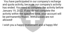 嗨,我在过去3个月左右的时间里一直在这个平台上交易。上周,它进行了维护并重新开放交易。我像往常一样交易并获利。他们说这是异常利润,他们让我付清这笔钱以解冻账户。昨天这又发生了。现在他们要求风险保证金也存入解冻账户并处理出金。以下是他们的回复:您好,12月22日系统检测到您的账户出现异常交易,因您的账户多次出现异常交易,涉嫌恶意套利,非法获利,触发二级风险预警,您的账户现在已被冻结。由于我司无权从您的账户中扣除非法获利资金,您需要在12月22日再支付2笔非法汇兑资金,您12月22日的获利金额为10730美元。您需要支付3倍的于10730美元的金额(31290美元)作为保证金(其中10730美元为异常利润返还,21460美元为多次违规双倍风险保证金),保证金将到达您的账户,您将完成支付利润。 入金后账户可解冻恢复正常,账户解冻恢复正常后即可正常处理提款。