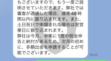 一开始内容就像正常的投资组一样,话题就股票之类的日常话题进行,但说到利润率,FX成了最好的结果,而且还接到了一个被称为老师的电话(据说如果是脱节的交易所,据说手数和杠杆会统一)。我存了几笔存款,因为我能够看到结果,但我认为是时候提款了。但是,我需要钱,所以如果我办理10万日元的提款手续,虽然会被批准,但不会存入我的账户。当我在推特等上查找信息时,我发现有一位同名老师受到了伤害。