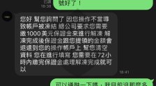 先是叫人加你好友,然後在投资300美金给你,然後诱拐你投资更多资金在平台。汇款都是不同帐户。 再以500美金升级VIP为由叫你去平台储钱,享有6%免扣手续费。 後续要出金,系统刻意 将帐号串改,再以 总公司名义说是人为,总公司要求付款保证金 1000美金才能解冻。 小心受骗!