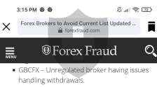 据某热门网站报道,GBCFX不受监管,客户通常会面临提款问题。远离这个交易商