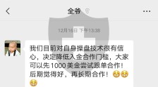 此人在微信朋友圈发信息1000美金体验盈利合作,还发观摩账号,因为是黑平台,后台能修改数据,让你看到盈利,入金就爆仓,血本无归,拉黑,联系不上,注意头像不要被骗