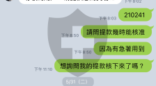 第一次申请出金时,被告知有多笔第三方汇款,依洗钱防制条例必须缴钱2%所得税(如期缴款)。 第二次询问审查结果时,又被告知参与平台无如期完成汇款,所以产生了滞纳金(如期补缴完)。 第三次询问审查结果时,客服人员就都不读不回。→我透过软体发现我被客服封锁?!同时我也发现我无法进行交易,现在这个状况等於无解了。不知道我这个帐户出了什麽问题? 很多的疑问~~~?希望平台能协助。