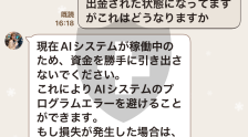 我加入了筱山金融学校的LINE群,筱山光太郎是老师,成田惠美是助理,RAYZ账户的负责人是一个叫大场的人。使用 FXGT 应用程序存入的金额会立即反映,所以我相信它,但实际上......由于该账户由 RAYZ 管理,因此您无法自行提款。每天我都会收到LINE的提醒信息,说我必须支付利润的管理费才能提款。我存了大约500万日元,现在亏本了。镜像账户?嗯,当这个数字增加到1000万的时候我很高兴。无论如何我都想收集一些。