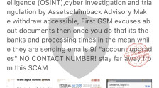GSM扣押了我的 56,000 美元作为人质,没有人会告诉我会发生什么。他们要求更多的钱作为存款,以帮助我增加投资,但当他们拒绝时,我要求提取一些利润。即使我正确地完成了所有的文书工作,也没有发生出金。AssetsClaimBack。 (如果没有他们的服务,他们会永远保留我的钱)。相反,寻找不同的正规交易商 大多数在线投资公司都是骗局
