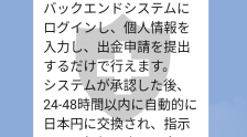 我们能够继续进行需要保留到 11 月 21 日的原油交易。当我们提前检查时,我们被告知可以使用杠杆预算,但半途我们被告知我们需要实物资金。还有一个条款规定,如果不能履行协议,将收取“30%的违约金”,所以我们设法筹集了足够的资金,变成了实物资金。我已经确认,一旦11月21日的付款完成,我就可以在11月22日自由取款,所以此时不知为何我心里松了口气。然后,当截止日期到来并且付款成功完成时,我要求提款,但提款被拒绝,因为我被告知要支付交易指导费。我存入的资金不足以支付所要求的实物资金,但我在代表的交易指导下通过虚拟货币FX筹集了不足的部分,因此不需要提前收取任何指导费。我没有听说过是的,但我觉得没办法了,就付了钱。付款时,我已确认不会再收取任何费用,但现在我被告知,除非我缴纳购置税,否则我将无法提取这笔钱。当然,我们不可能交购置税,所以我们就跟他们商量了。这是一笔非常大的资金,因此我们非常感谢您的帮助。