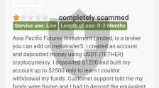 当我在这家交易公司工作时,他们对了解我的需求和我的实际财务资源几乎没有兴趣。如果您没有无限的银行账户,则应避免使用此交易商。他们积极鼓励我在我已经亏损很多的时候投资更多的钱。其中一位经常使用攻击性和贬损性语言。然而,最近一项资产索赔/com 追回行动暴露了 ASIA PACIFIC并导致我的投资被退回。这个平台是有史以来最糟糕的交易公司。