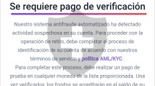在前两次提款中一切都很顺利,但在第三次提款时,由于可疑活动,他们扣留了我的资金,并要求我进行反洗钱(反洗钱)验证的测试转账。这对我来说似乎很可疑...