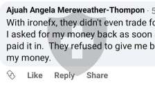 IroneFX不退还他们的客户钱,也不回复电话或电子邮件。大骗局。