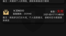 无法提现,要先交个人所得税,故意把我银行卡号改了一位数,让交保证金才能解冻资金