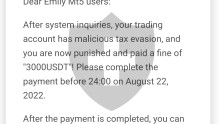 我想告诉你关于无良交易商Jinkra的事。这是一个不提取资金的诈骗平台。在您将资金存入平台并尝试提取少量资金后,他们会出金以表明他们运作良好。但是当你有少量利润时,他们开始要求对利润征收35%的税,并且不提取资金。我开始进一步交易,我的利润变成负数-$1706,之后我收到了来自平台的一封信,说我被罚款 3000usdt 并威胁要冻结我的账户。技术支持目前不回复网站上的电子邮件或实时聊天。请帮我拿回我的钱。