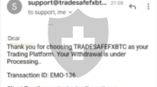 我被Tradesafefxbtc骗了,我首先存入了 3000兰特,几天后他们要求我存入8000兰特用于保护帐户的软件。我的帐户总共有65,590 美元,他们要求我存入20000兰特以获取利润,如果没有如今也无法出金!