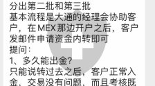 我在5月19日入金3万USDT,然后把入金截图和交易id都发给了客服,经平台客服确认收到,告知我已入账成功,我也收到确认入金邮件,我在交易几笔后准备出金试出入金,提交申请后就没注意了,客服告知是有1到3个工作日到账,第三个工作出金日状态还在审核,期间没有任何人联系,第三个工作日我主动询问,只有等待,第四个工作日还是等,第五个工作日告知我的入金还在途中,以这个理由拒绝出金审核,但没有提供任何实质性证据证明我的资金还在途中,我的入金有截图有交易id,区块链交易id可以直接查询已经到他们的钱包。 另外如果是真的我的资金还在途中没到他们钱包,一个大交易商会给我我入账?会让我交易吗?mbg会在没有确认收到USDT之前就给你钱让你交易?这不可能是一个专业交易商做的事,为什么等我出金才告诉我没到账