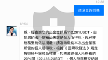 6月1日,我想提款,但我必须缴税。客服说:“亲爱的,经核实,您的提款金额为41404USDT。由于您的账户余额尚未缴纳个人所得税,已被税务系统拦截。请及时缴纳所需的个人所得税。根据香港税法(在香港缴纳的所得税性质的税款可以抵扣),根据个人账户缴纳45%的个人所得税(18631.9USDT)。个人所得税缴纳成功处理后,资金将在2小时内转入您的银行账户(缴纳个人所得税后,100万USDT以下的提款无需再次缴纳)。”6月10日,客服说:“亲爱的,经核实,由于您的个人账户存在风险控制,提款时显示为高风险账户并显示红色警报。您的个人信用评分目前为90分。为了保障您的个人资金安全,您可以申请本平台担保消除个人不良信用。您需要将信用评分提高至95分。如果您每个月保持账户无违规行为,可以恢复2-3分。如果您急需恢复信用评分,可以支付5000USDT每分(1000USDT)将其提高至95分!本平台不收取任何费用。认证完成后,您可以提取所有资金!”6月12日,客服说:“您好,经核实,由于您的账户存在过多异常情况,您的提款渠道已损坏。您现在需要修复提款渠道。为修复提款渠道,您需要支付账户总资金的5%作为押金。您账户中的总资金为:66,837.34USDT。您需要支付(66,837.34*0.05=3,341.86USDT),(3,341.86USDT)作为修复提款渠道的押金。押金支付后,客服人员将为您提交至上级审核部门,并修复您的提款渠道。恢复时间为24小时。修复完成后,您的账户权益将恢复,并将支付的保证金返还至您的账户资产。请在7个工作日内完成支付。如果您未能在时限内支付,交易所将冻结您的账户,并按每天668.37USDT收取资金管理费。对给您带来的任何不便,我们深表歉意。”6月14日,我询问了提款进度。客服说:“亲爱的,由于您的账户存在多个异常情况,相关部门已将您的资金和个人信息转至第三方平台进行审核和提款。第三方平台回复:排队号码为176。请耐心等待!”6月19日,我询问了我选择了什么号码,客服说165。