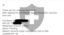 最高领导人/导师OlympusFx名字DATO NICKY。他帮助我们进行交易,并保证每月提供约8%的利润。当我们获利要撤回时,他故意进行高手巨额亏损交易,并且不允许出金。我们别无选择,但是要提取大约200k USD的余额也无法提取。最终知道他是大骗局!我们只想退回金钱余额!!!