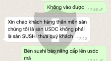 地面SUSHI而usdc是个骗局,专门让员工去交友app结识异性,开户入金后冒充同一个人,想提现后,工作人员给了为了烧账户,目的是没钱提现?我希望得到解决,希望交易所返还我的本金 65,000usd= 1,500,000,000 vnd,