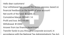 他们说我在出金之前必须缴纳 10% 的税。我亏了 62,63。2