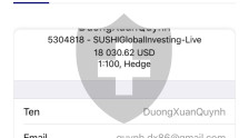 非常明显这家公司是骗子。我亏了超过 42000 USDT给他们。他们运行一个被操纵的 MT5,起初看起来很真实。最初,我获得了可观的利润,但最终又输给了系统,为了弥补其中的一部分,我向 traceasset.org 提交了投诉,到目前为止,他们已经处理了这项任务。我看过很多评论都说SUSHI Global investing Limited正在进行一个骗局。我希望他们尽快被打倒