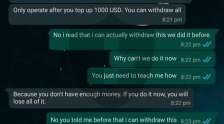 你不能提现,他们所做的就是把你转给另一个运营商,然后他们会告诉你充值 1000 美元才能提现!