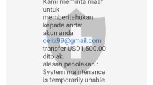 一开始,2021年,我遇到了一个老朋友,有一个香港女孩,开始约会,她的名字叫Kelly,让她进入Ring,每笔交易都无所谓,进来的钱是IDR 900,000,000,用一个余额为 3,150,000,000 印尼盾。月底我想提现,账户被冻结了,原因是要求20%的税,我怎样才能把钱退回给我
