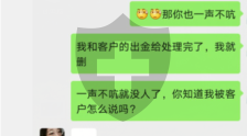 业务员消失了一个多月,因为看到了我发的曝光信息过来找我,让我给删除了,我说把出金问题解决了就给你撤销,结果说的比我这个受害者还委屈,真可笑。一开始找我的时候说的天花乱坠的,资金可以保障,绝对安全,出了事情就这个样子,先是不理你,然后说没办法。一点底线都没。