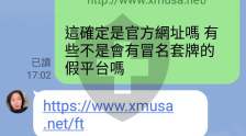 最近在脸书认识了一个网友 网友说她有在操作外汇每个月可以赚好几万美金於是网友给了我 https://www.xmusa.net/ft这个仿冒XM的假平台一开始我没察觉到是假平台 先汇了5077.3USD後来一直无法出金 并且询问XM正式官方平台才知道被网友诈骗了大家要多小心注意